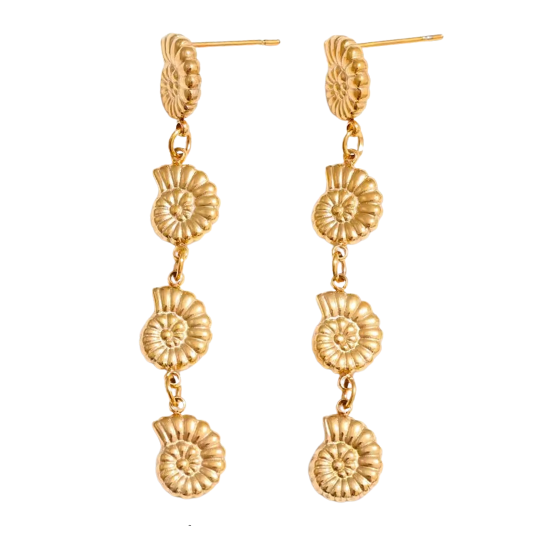 Inspired by ocean fossils, designed for modern goddesses. The Ammonite Earrings mix bold texture and golden shine for a look that’s pure seaside chic. Sculptural yet timeless, they’re proof that nature does statement jewelry best.