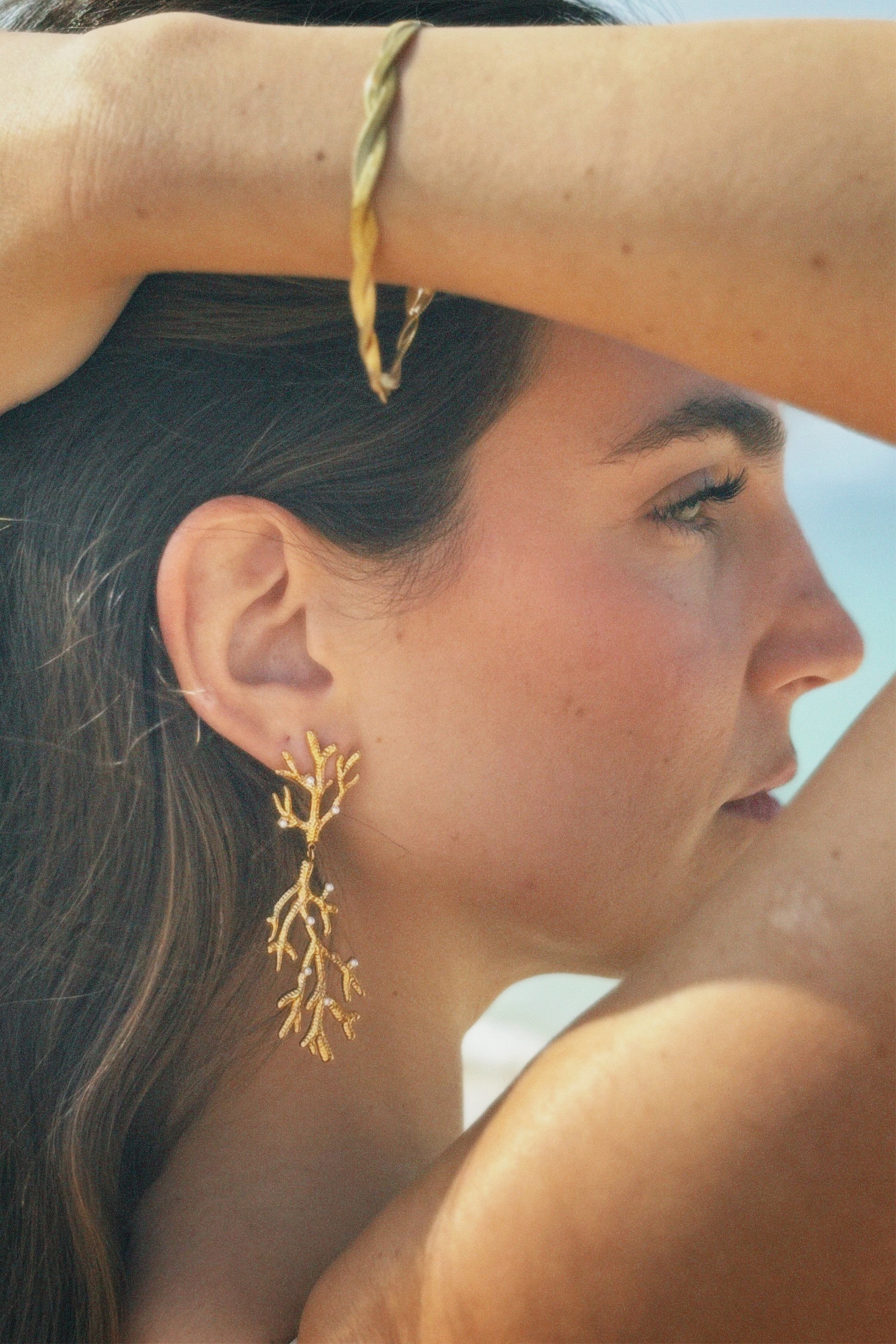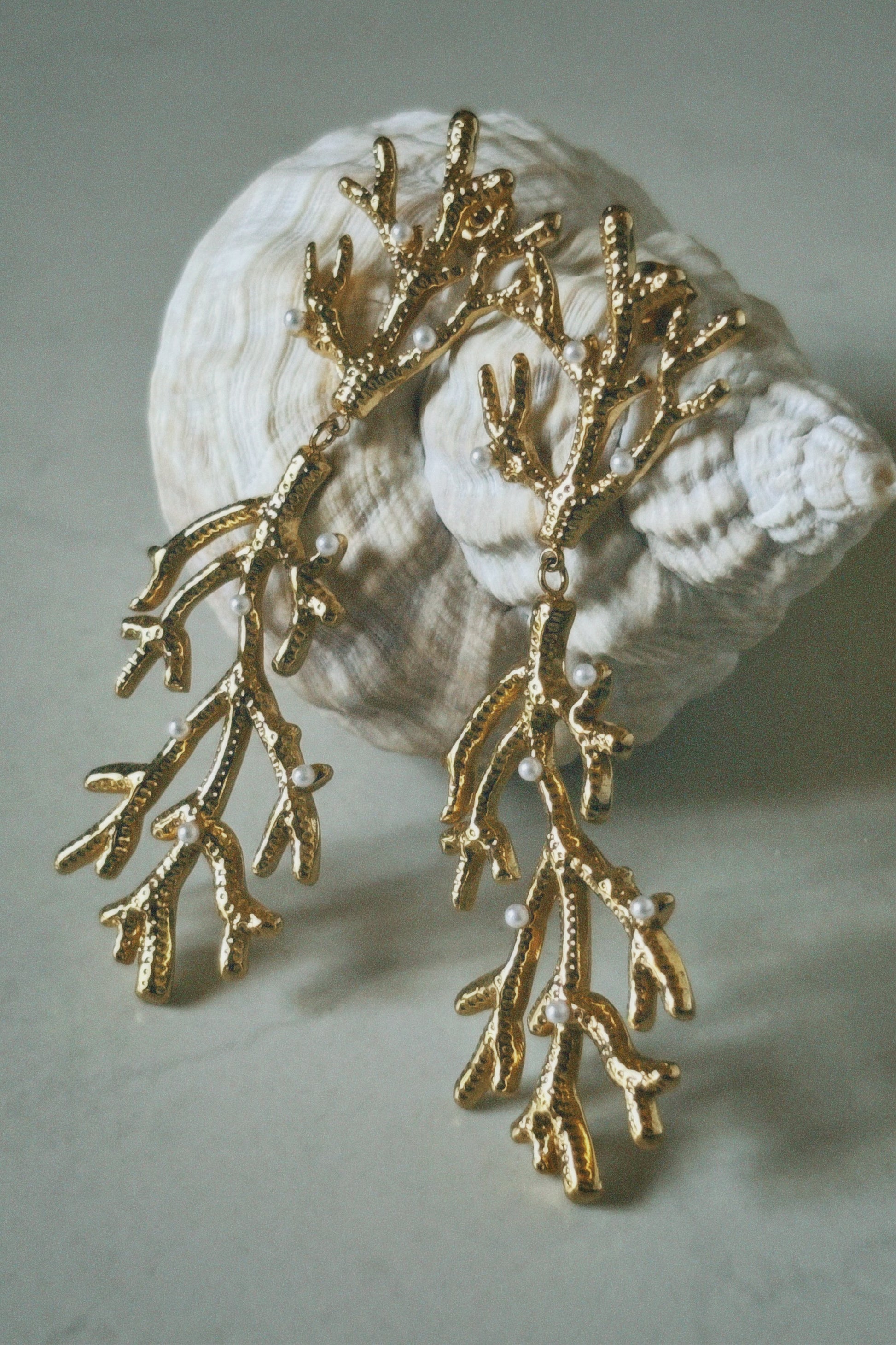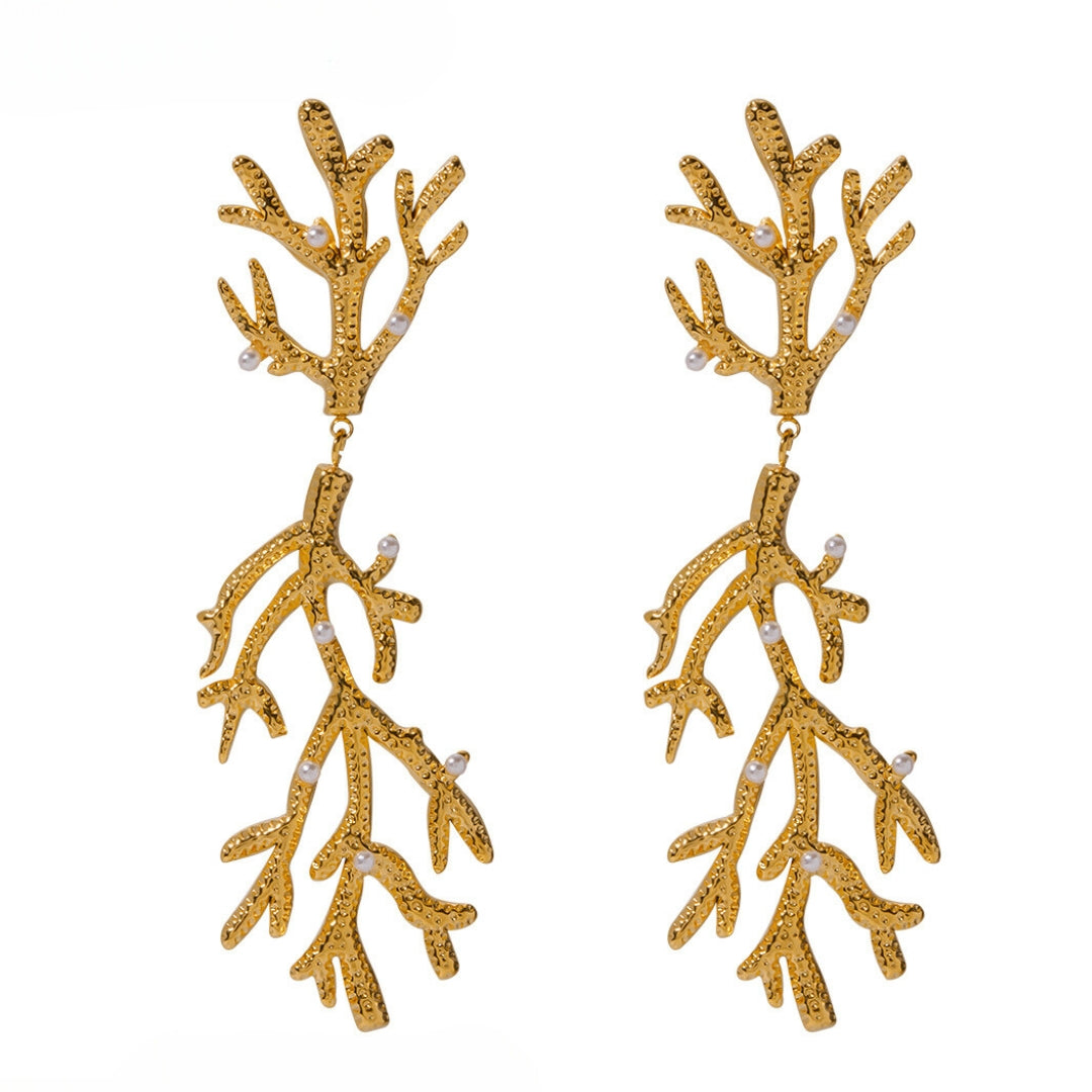 Channel the beauty of the deep sea with the Coral Pearl Earrings. These statement pieces blend intricate, golden coral branches with a touch of whimsy—perfect for turning any outfit into a conversation starter. Who said bold can’t be breathtaking?